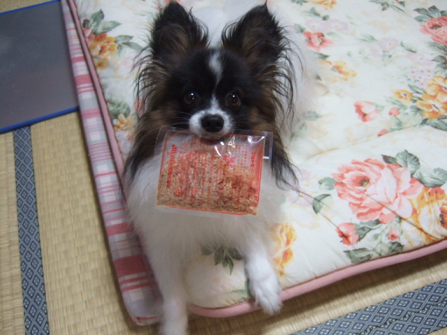 削り節の袋くわえた顔がキラキラしてるし!(笑)