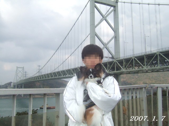 曇り空でイマイチですが、関門橋をバックに記念撮影しました。
