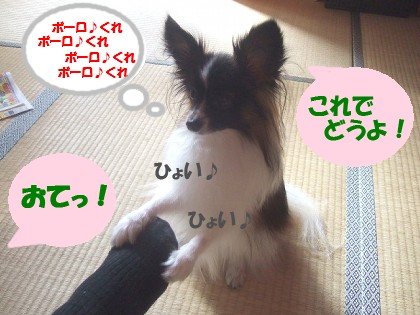 この後、ボーロを貰ってまた両手でお手をしていました~。