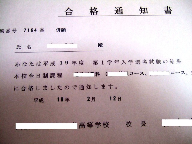 お嬢さん、第一志望の高校に合格できて本当に良かったですね~。