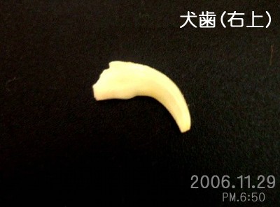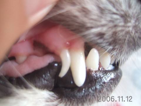 すると右上の犬歯(けんし)の根元から血がにじんでいました。
