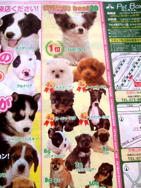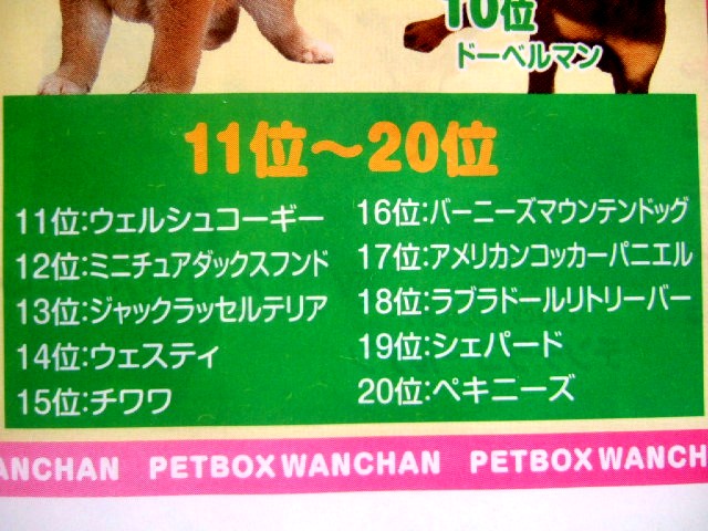 撮影会があったペットショップのチラシにこんなランキングが・・・