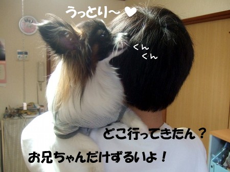 外から帰ってきたばかりのお兄ちゃんの匂いをチェックするのもコハクの趣味かも?!