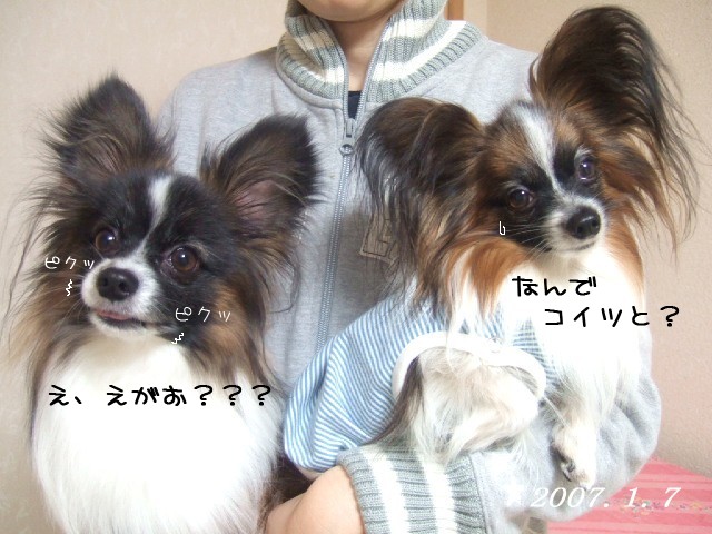風ママに抱っこされてコハク念願?の2ショットです。
