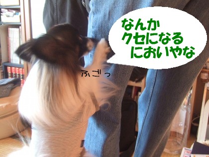 今朝も出勤準備中のパパのジーンズの匂いを嗅ぐのに夢中になっていました。